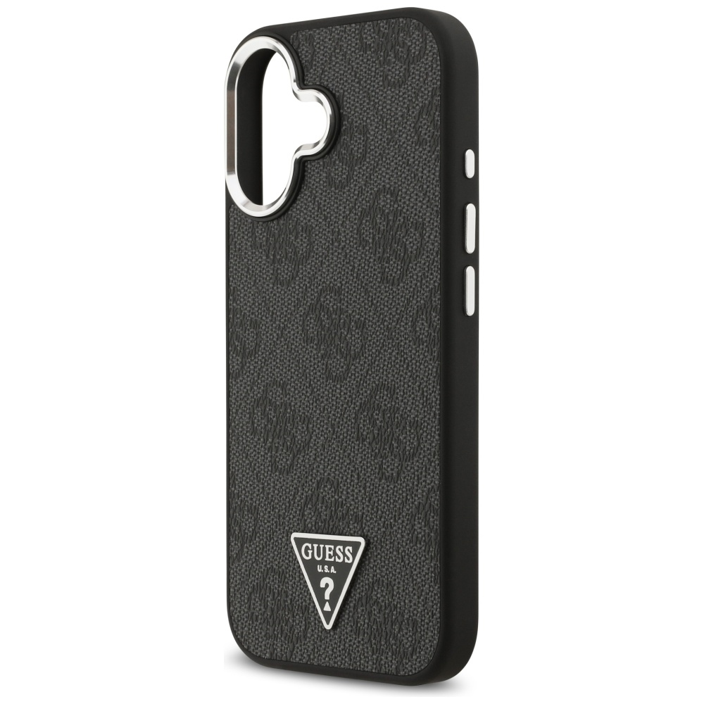 Guess Nakładka Magsafe 4G PU Leather Case With Triangle Logo And Silver Metal Camera Frame Do iPhone 17 Czarna
